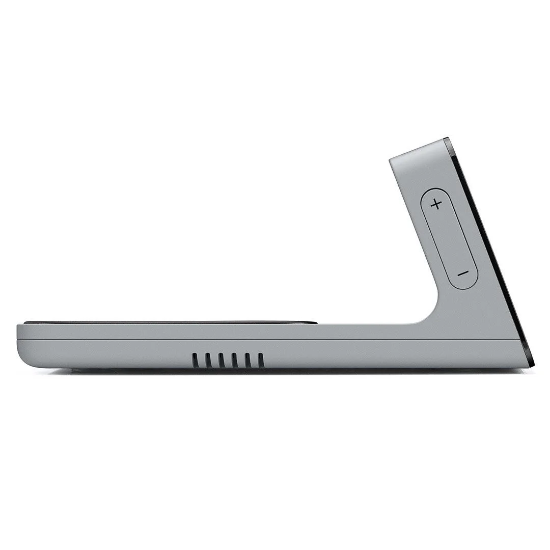 BC21’in tasarımı, kullanıcıyı doğal olarak cihazını, kendi kendini ayarlayan LCD ekranın arkasında bulunan, gözden uzak, akıldan uzak kablosuz şarj pedine yerleştirmeye teşvik eder. Tasarım, günümüzün çok fazla ekran süresi sorununu ele alır ve basit bir çözüm sunar. 10W’ta alt değiştirme pedi hızlı şarj olur ve tüm Qi özellikli ürünlerle uyumludur. Silikon şarj pedi, cihazların aşırı ısınmasını önler ve kaymayan bir yüzey alanı sağlar.
