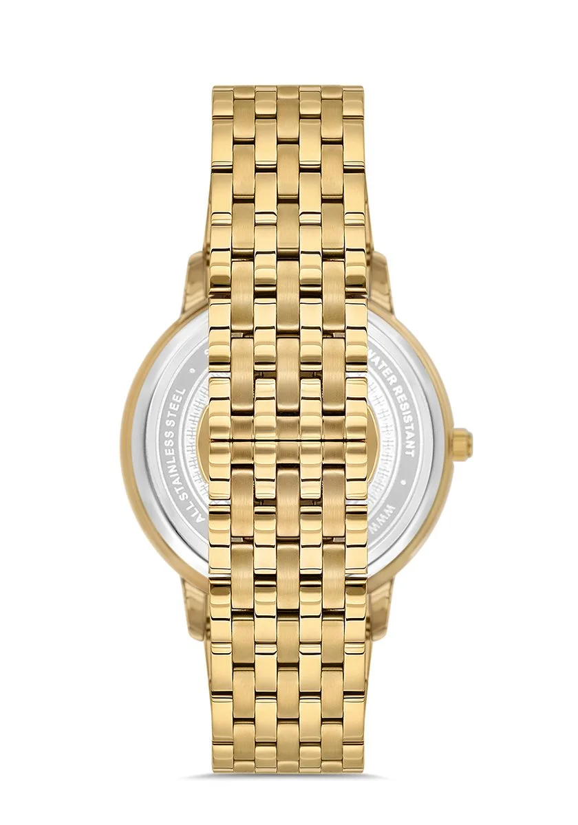 • Göz Alıcı Tasarım: Gümüş ve altın rengi detaylarla zenginleştirilmiş paslanmaz çelik kasa ve kordon, her kıyafetle mükemmel uyum sağlar.