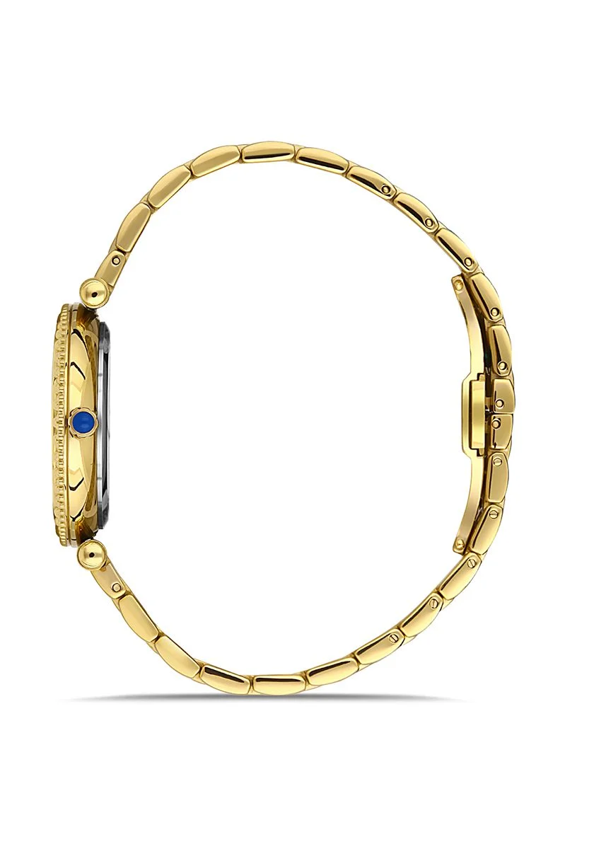 • Göz Alıcı Tasarım: Özenle yerleştirilmiş parlak taşlarla süslenmiş kasa ve kadran, saate lüks bir dokunuş katıyor.