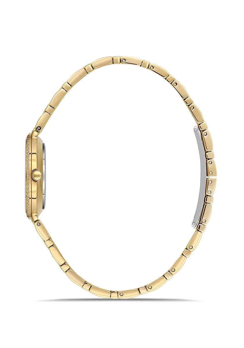 - Göz Alıcı Tasarım: Özenle işlenmiş parlak taşlarla bezeli kasası ve kadranı, tüm bakışları zahmetsizce üzerinize çeker.