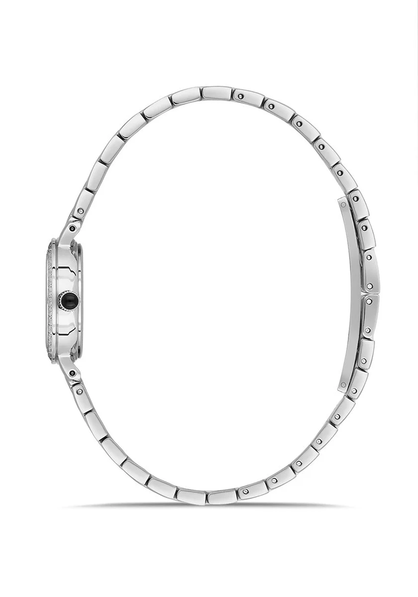 - Göz Alıcı Tasarım: Işıltınızı yansıtan, özenle yerleştirilmiş parlak taşlarla süslenmiş kasa ve kadran.