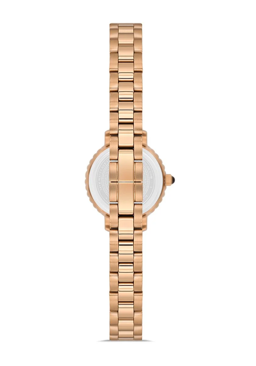 - Işıltılı Tasarım: Hem kasayı hem de kadranı süsleyen özenle yerleştirilmiş taşlar, saate göz alıcı bir parlaklık kazandırır.