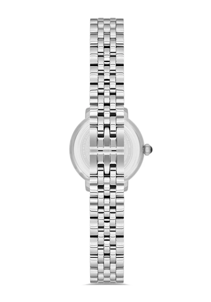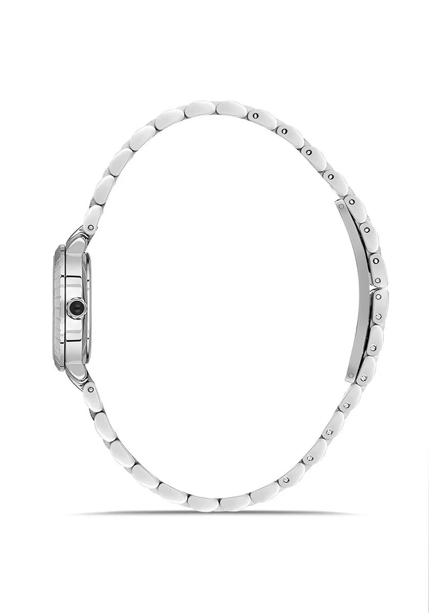 Göz alıcı taşlarla bezeli gümüş renkli kadranı ve kasası, her ışıkta parlayarak dikkatleri üzerinize çeker. Sadece bir saat değil, aynı zamanda şıklığınızı tamamlayan sofistike bir mücevher olan bu model, özel günlerinizden günlük kullanımınıza kadar her kombininize mükemmel uyum sağlar.