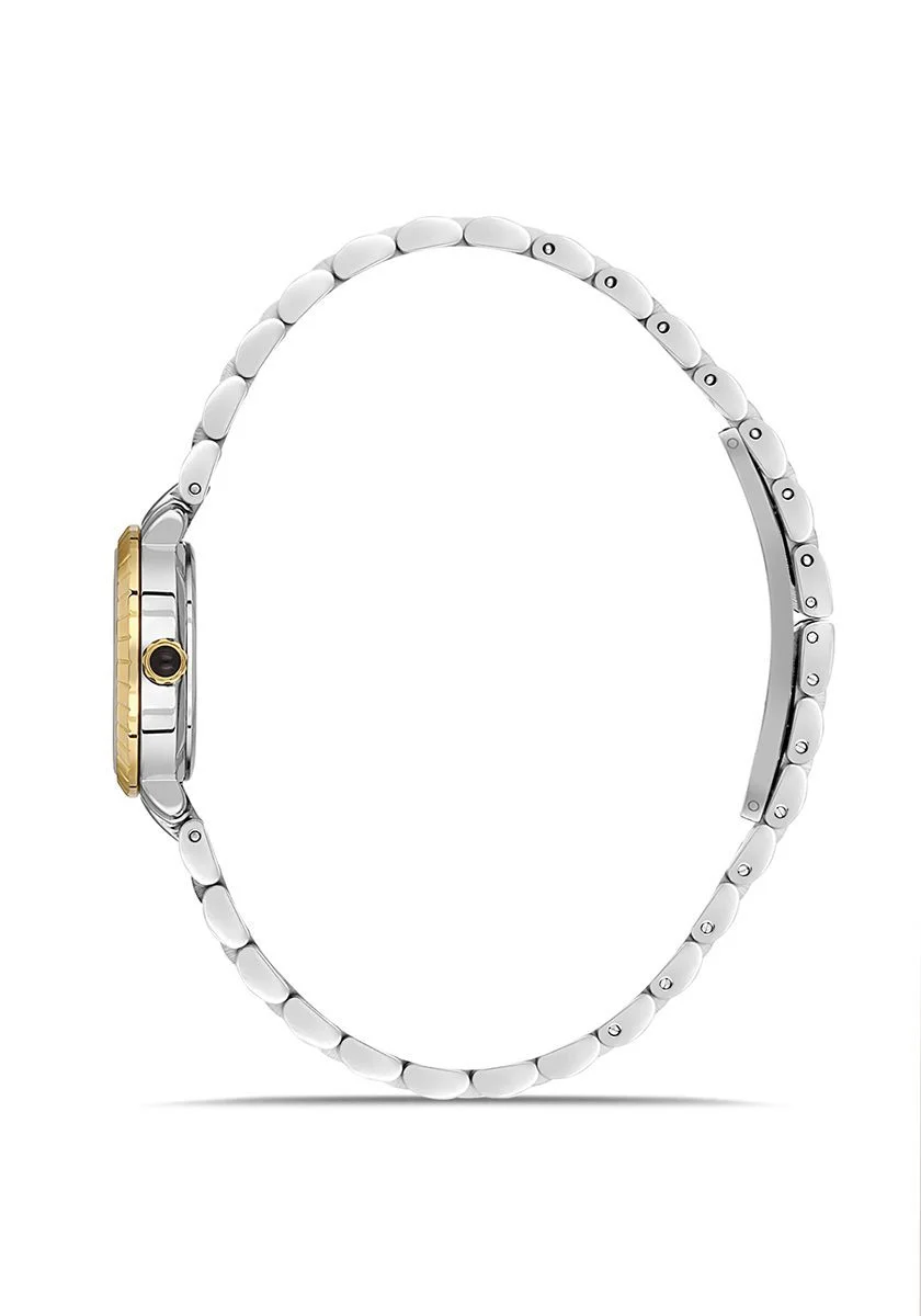 Hislon’un ikonik Classic Queen koleksiyonunun en gözde parçalarından biri olan QL198T-09SG modeli ile tanışın. Gümüş ve altın tonlarının kusursuz uyumunu, taşlarla bezeli ışıltılı bir kadranla birleştiren bu saat, zarafeti ve lüksü bileğinizde taşımanız için tasarlandı. Her anınıza değer katacak bu eşsiz tasarımla, stilinizi bir üst seviyeye taşıyın.