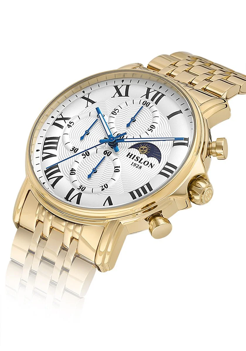 Saatinizin kadranında yer alan büyüleyici mehtap (moonphase) tasarımı, sadece zamanı değil, gökyüzünün estetiğini de bileğinize yansıtır. Saniye göstergesindeki zarif Hislon logosu ise markanın kalite imzasını her bakışta hissettirir. Bu sofistike detaylar, saatinizi sıradan bir aksesuardan çıkarıp bir stil beyanına dönüştürür.