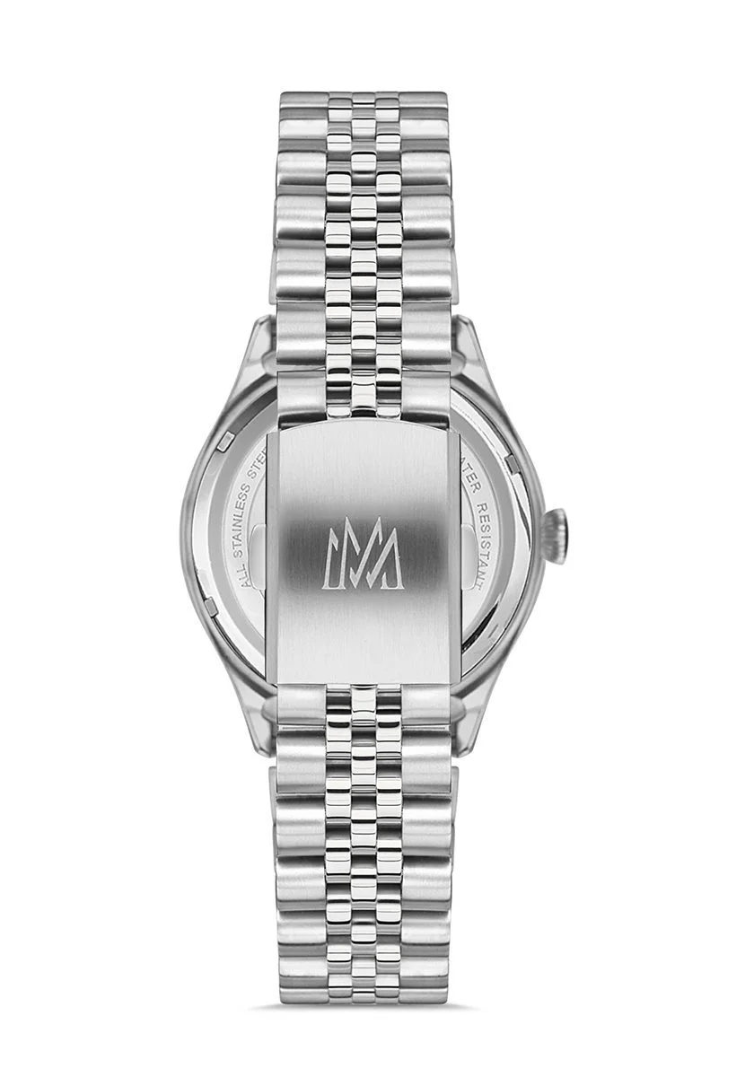 - Göz Alıcı Tasarım: Paslanmaz çelik kasa ve bilezik, gümüş rengi kadran ile birleşerek minimalist ve sofistike bir görünüm yaratır.